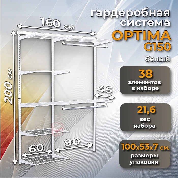 Гардеробная система Optima G150 белая – это идеальное сочетание элегантного дизайна и функциональности. Компактные размеры и универсальная комплектация делают ее отличным выбором для оптимальной организации пространства.
