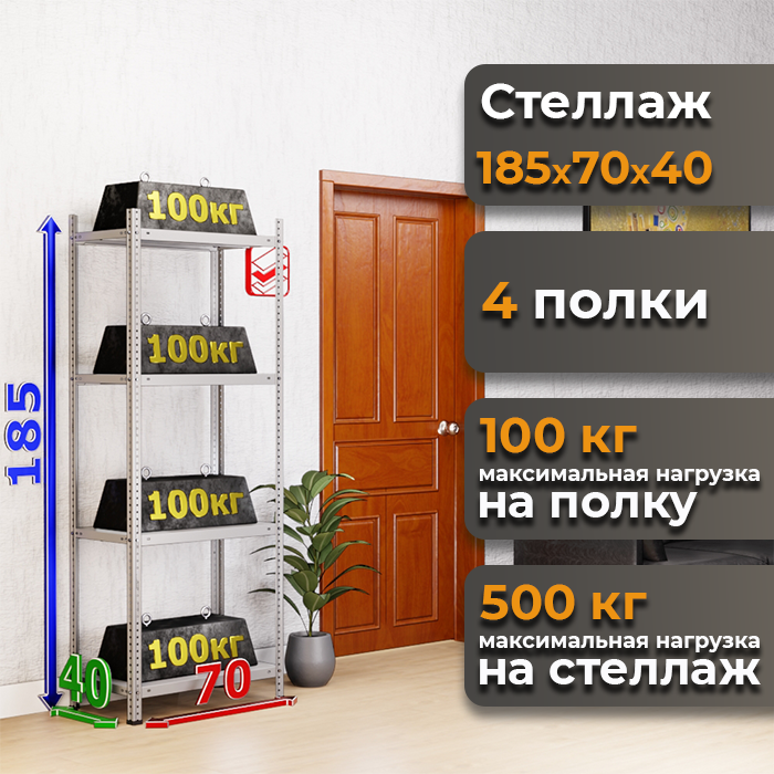 Соберите свой идеальный порядок со стеллажем MS Standart 185х70х40 с 4 полками — надежное и доступное решение для любых задач!